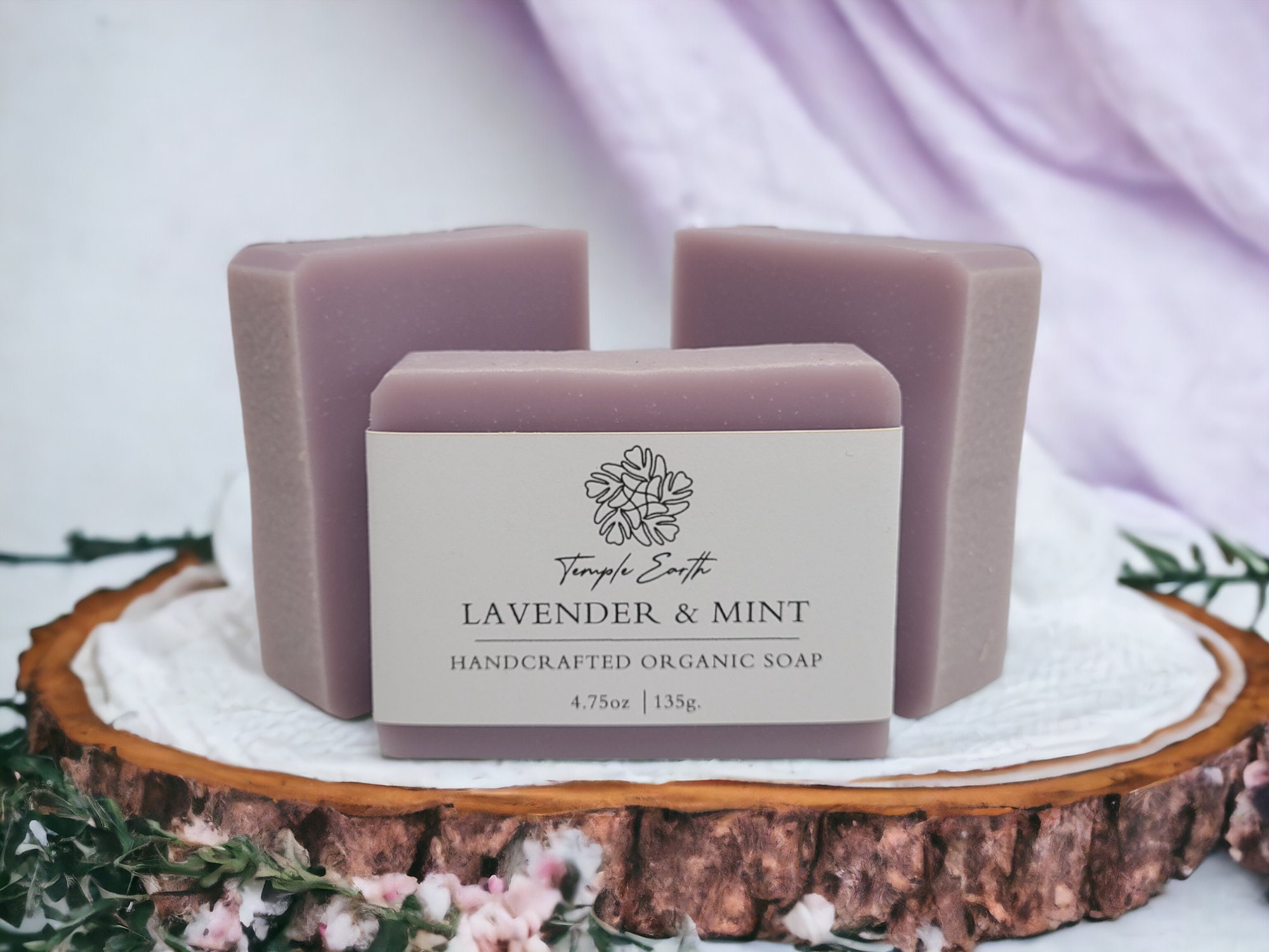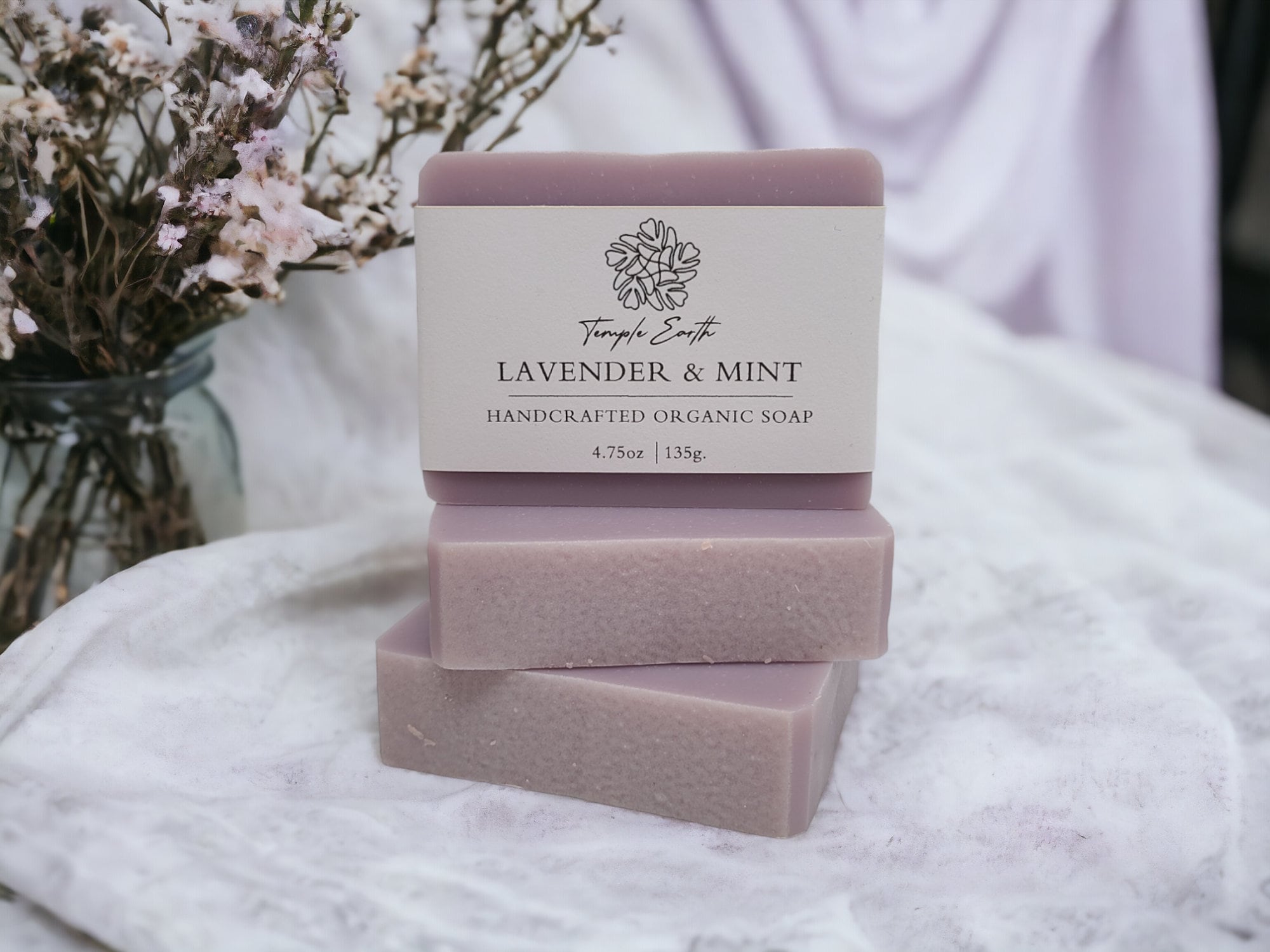 Breathe in calm, breathe out clarity with our Lavender & Mint handcrafted organic soap bar. A soothing scent blend of herbal lavender flowers, fresh peppermint, and cool spearmint.